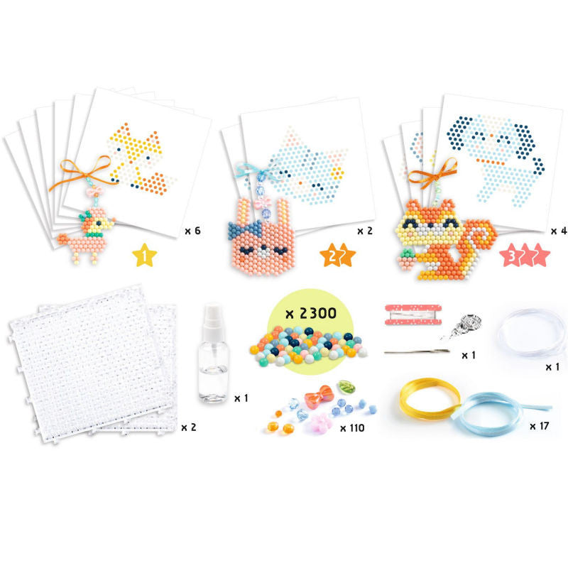 Cette activité passionnante pour les enfants se joue en 2 étapes. D'abord, on crée le motif en positionnant les perles de couleur sur la plaque alvéolée transparente. Puis on vaporise de l'eau pour que les perles adhèrent les unes aux autres, c'est magique !