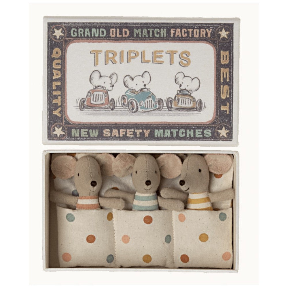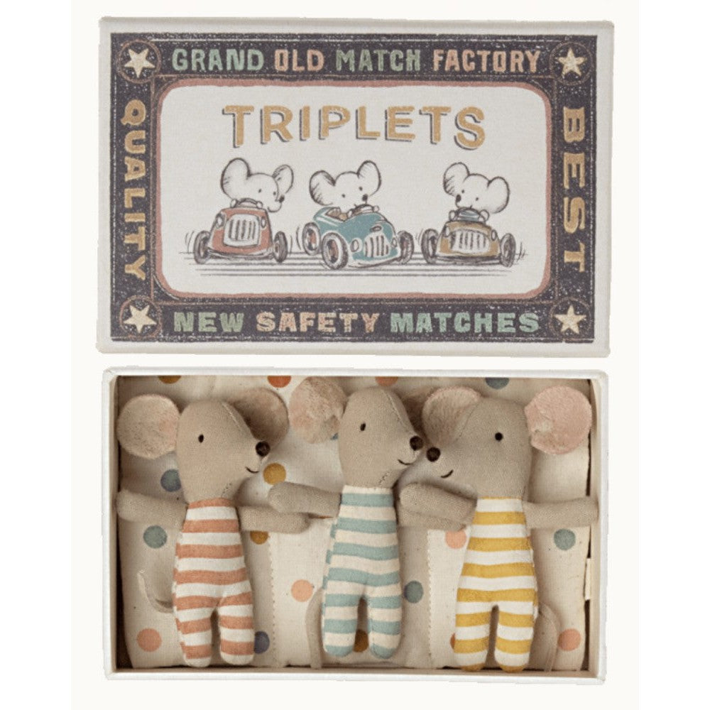 Installez confortablement dans leur boîte-lit, les triplés souris MAILEG sont à croquer.