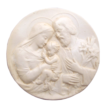Ce médaillon délicatement sculpté représente la Sainte Famille, symbole d’amour, de foi et de protection. Réalisé en plâtre statuaire de haute qualité, il est patiné à la main dans des tons ivoire doux à l’aide de cires et de pigments naturels, lui conférant un aspect à la fois raffiné et authentique.