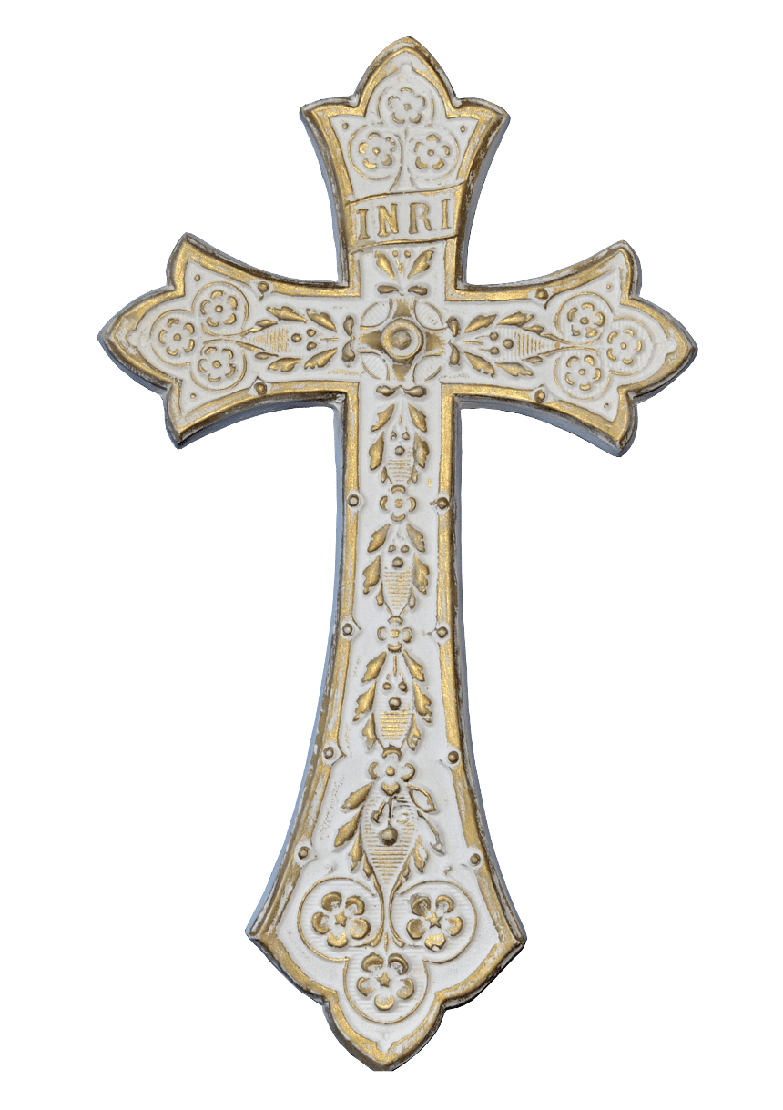 Cette croix élégante associe la pureté du plate statuaire à la richesse de délicats ornements dorés. Chaque détail est travaillé à la main, mettant en valeur la finesse et la profondeur des symboles chrétiens.
