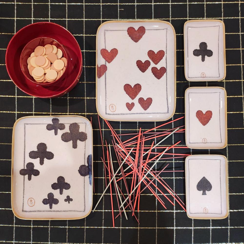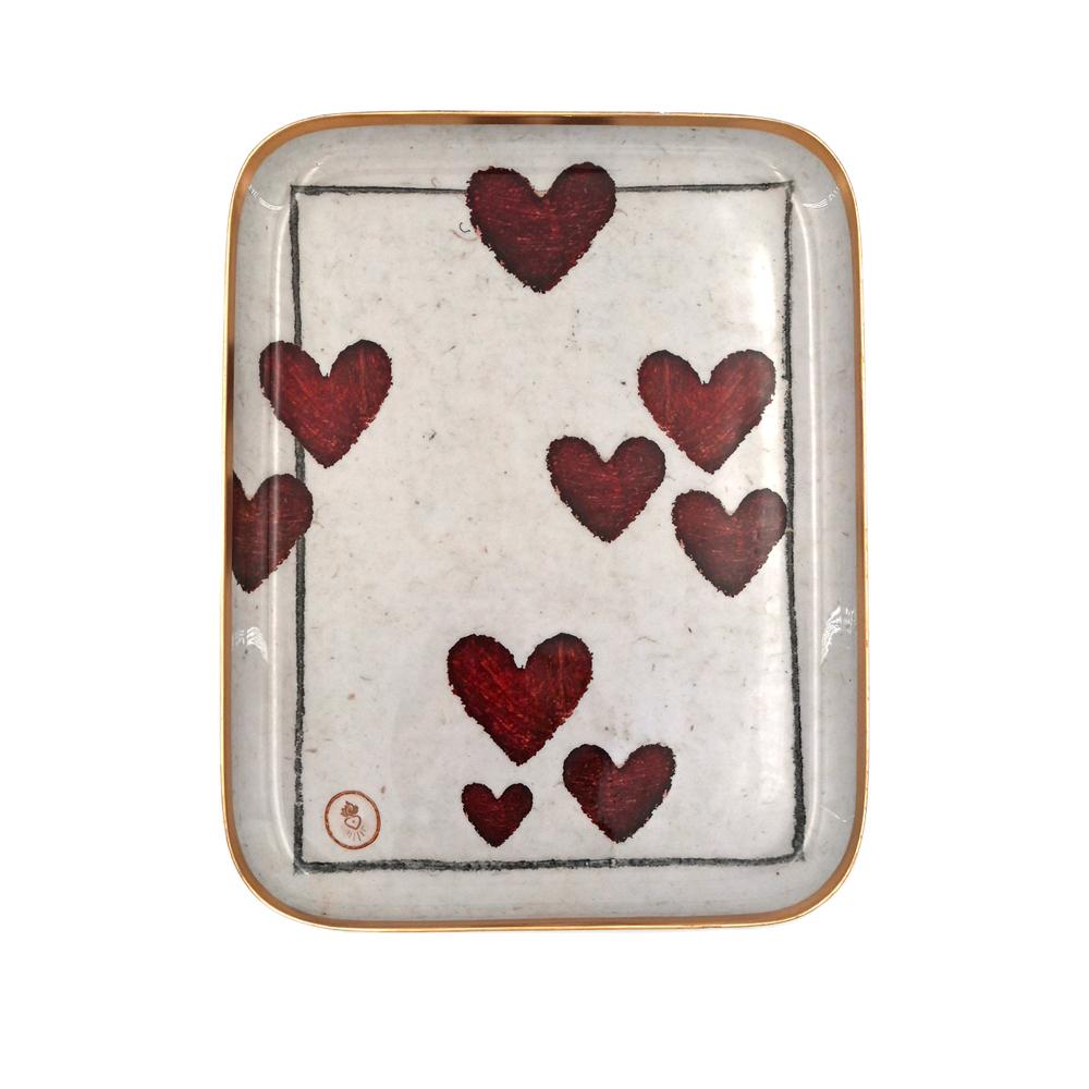 Plateau rectangulaire au motif cœur inspiré des cartes à jouer ! Il est en aluminium émaillé et aussi fonctionnel qu’esthétique.