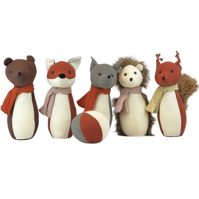 Ce jeu de quilles avec ses têtes d'animaux de la marque Egmont Toys peut être utilisé en intérieur car il est en tissu et ne fait donc aucun bruit.