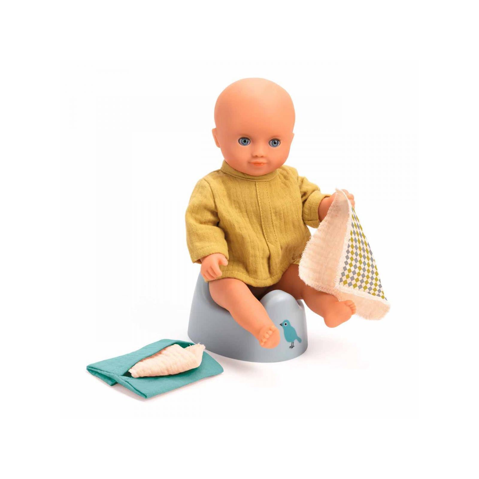 Un pot et un étui avec deux lingettes douces en tissu double gaze, des accessoires incontournables pour les premiers pas vers la propreté de sa poupée. Des accessoires de jeu adaptés aux poupées de 30 à 36 cm.