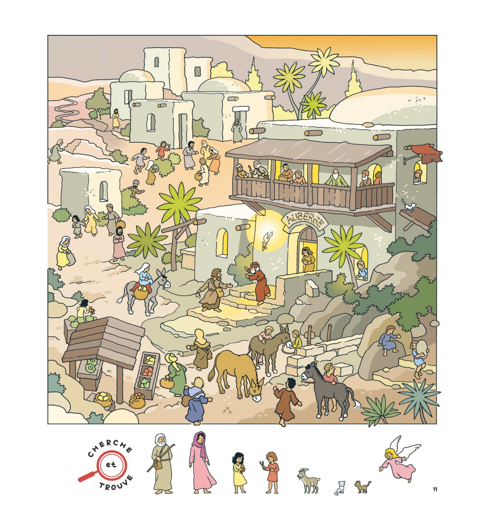 Retrouve Sara et Simon dans 12 grandes illustrations évoquant la Nativité et les traditions de Noël. Avec eux se cachent également Félix l'instituteur et sa fille Estelle, les chats Blanche et Lebrun et Quentin le bouquetin ! Ouvre l’œil et regarde bien chaque scène. Seras-tu le plus rapide pour les retrouver ?