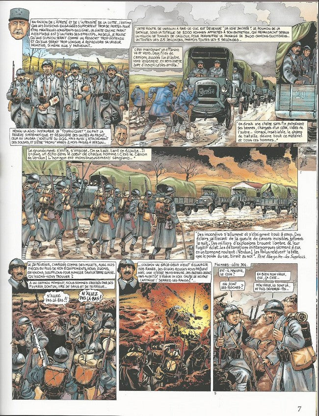 Des 300 jours de Verdun à la bataille du Chemin des Dames, en passant par l'échec de la Somme.  L'auteur décrit l'ouragan de feu des années 1916-1917. L'artillerie enflamme l'horizon sur le front qui devient un enfer pour les soldats. Les souffrances physiques et morales des troupes sont traumatisantes. Les pertes effroyables dans les deux camps sont portées à la responsabilité des généraux, souvent rivaux, qui s'acharnent à vouloir percer le front. Cette guerre à outrance se caractérise par une guerre industrielle : aviation, marine, armement, motoristes de tous pays prennent part à l'effort de guerre, créent de nouveaux matériels et voient leur chiffre d'affaire monter en flèche au fur et à mesure que le conflit augmente en violence. La diplomatie internationale joue un rôle essentielle en parallèle des luttes armées : les tentatives de paix initiées par l'Autriche-Hongrie à cette période échouent et la révolution bolchevique, soutenue par l'Allemagne, éclate en Russie et déstabilise le pays. Cependant, l'équilibre des forces se modifie lentement avec l'entrée des États-Unis en avril 1917.