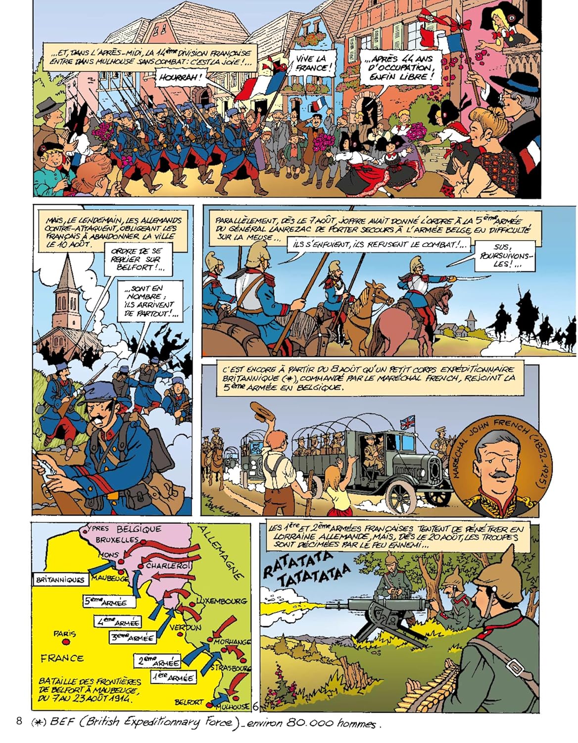 Les commémorations du centenaire de la Grande Guerre n'échappent pas aux plus jeunes. Pour répondre aux questions qu'ils ne peuvent manquer de se poser, les Éditions du Triomphe ont choisi de leur raconter cette page d'Histoire en BD, comme aux plus grands. Mais le scénario s'attache à deux points importants : la clarté du scénario et le respect de la sensibilité des plus jeunes. À travers la guerre d'Amédée et Martin, deux jeunes paysans qui vont traverser tout le conflit, le jeune lecteur participe aux faits marquants et aux grandes batailles.