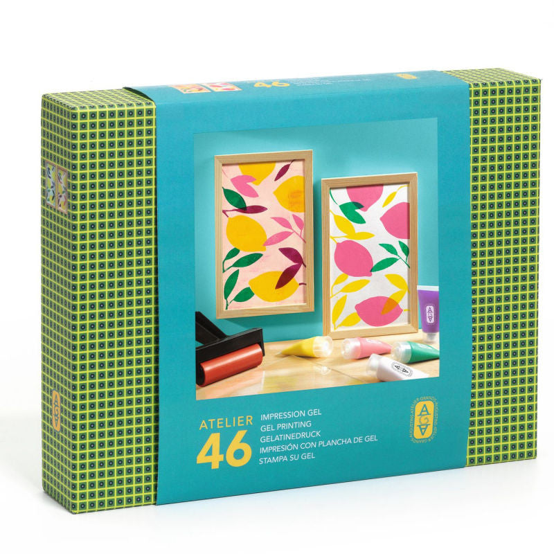 Atelier 46 vous propose un kit créatif pour expérimenter la pratique de l'impression gel, une technique artistique d'impression par transfert sur papier. Ludique et accessible à tous, elle consiste à utiliser des superpositions, des empreintes végétales, des pochoirs,... pour donner naissance à des oeuvres uniques. La plaque de gel est réutilisable à l'infini. Vous apprendrez à jouer avec les textures, les couleurs et les formes pour créer vos propres impressions et réaliser de véritables tableaux.