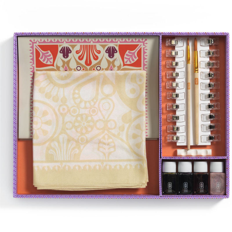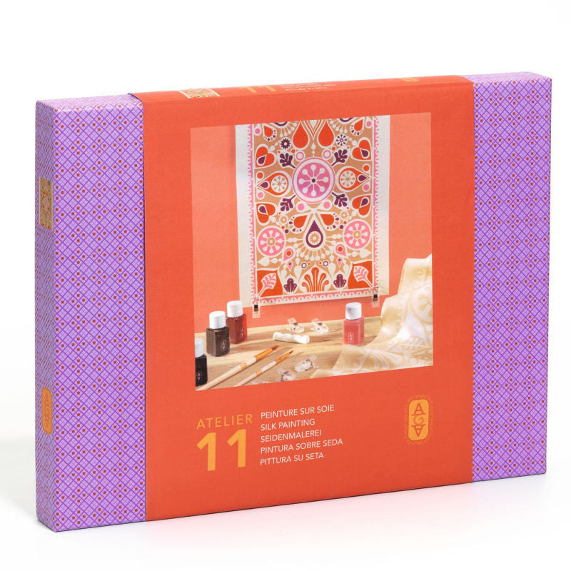 Atelier 11 vous propose ce kit créatif pour vous initier à cette technique raffinée qui consiste à appliquer de la peinture fluide sur de la soie. Le tissu est déjà préparé avec un serti qui dessine les contours. Pas besoin d'être précis, les couleurs se diffusent proprement. Vous réaliserez un long foulard en soie, une création unique à porter fièrement ou à offrir en cadeau.