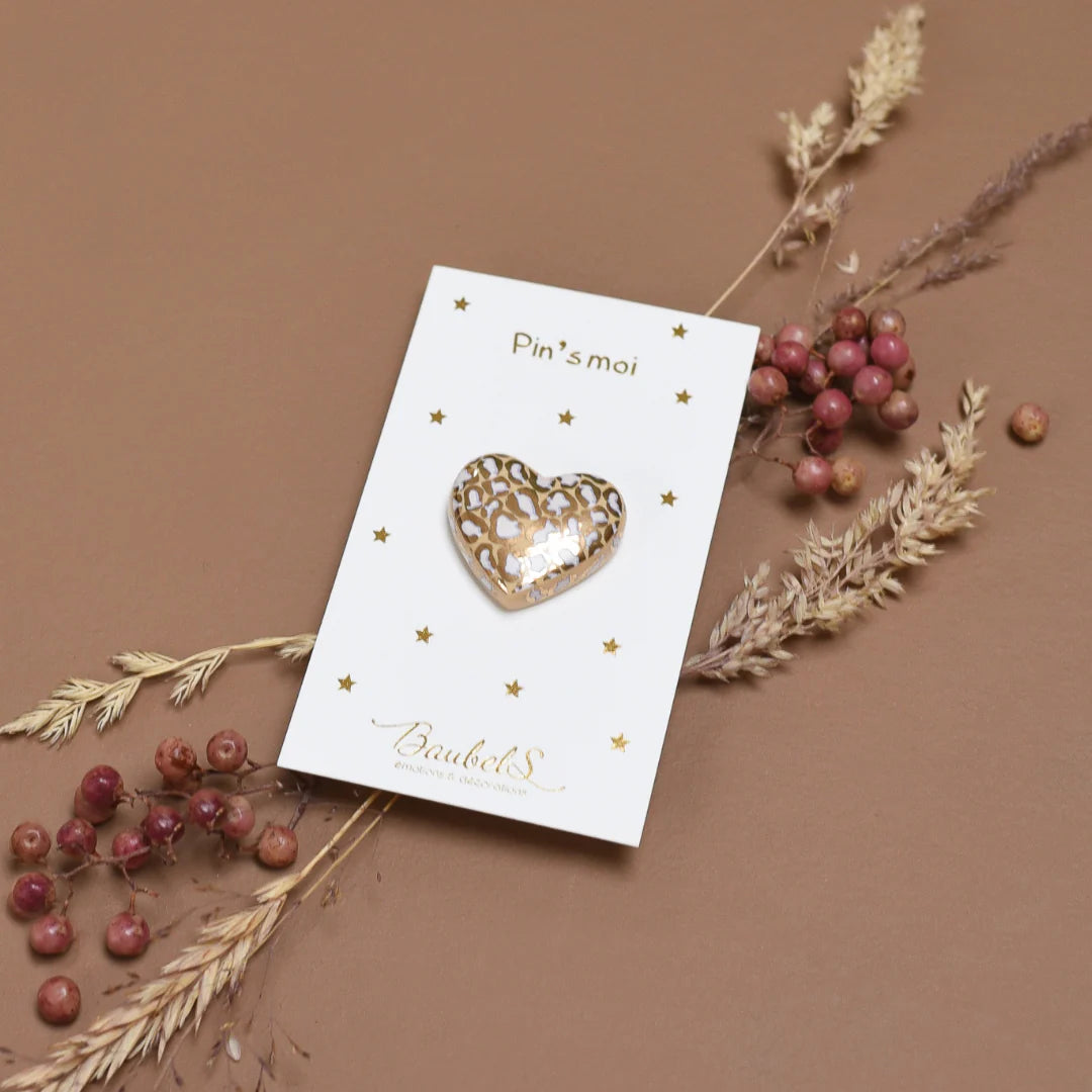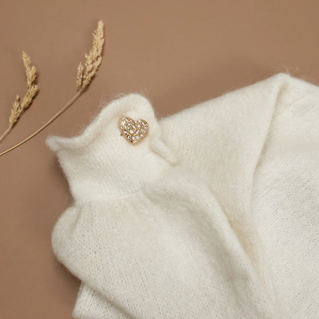 Sur un revers de manche d'un joli pull par exemple, notre pin's blanc et doré ajoutera du chic à votre tenue. 🤍💛